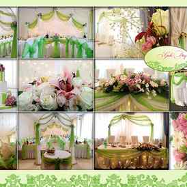 - Стандартный пакет: минимальный пакет + одна конструкция, чехлы на стульяили «юбки» на столы), оформление танцплощадки, букеты на столы;